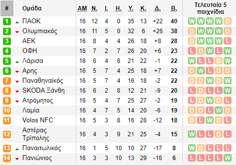 *Η βαθμολογία είναι από το gr.soccerway.com
