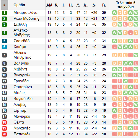 Συνεχίζεται η δράση στη La Liga με τις δύο ομάδες που οδηγούν την κούρσα του τίτλου, να παίζουν και οι δύο σήμερα. Η Ρεάλ φιλοξενείται στην έδρα της γειτόνισσας, Χετάφε ενώ σε γειτόνισσα φιλοξενείται και η Μπαρτσελόνα που θα αντιμετωπίσει την Εσπανιόλ στο ντέρπι της Καταλονίας. Στα υπόλοιπα ματς, η Βαλένθια αντιμετωπίζει εντός την Εϊμπάρ, ενώ η Ατλέτικο υποδέχεται την Λεβάντε.